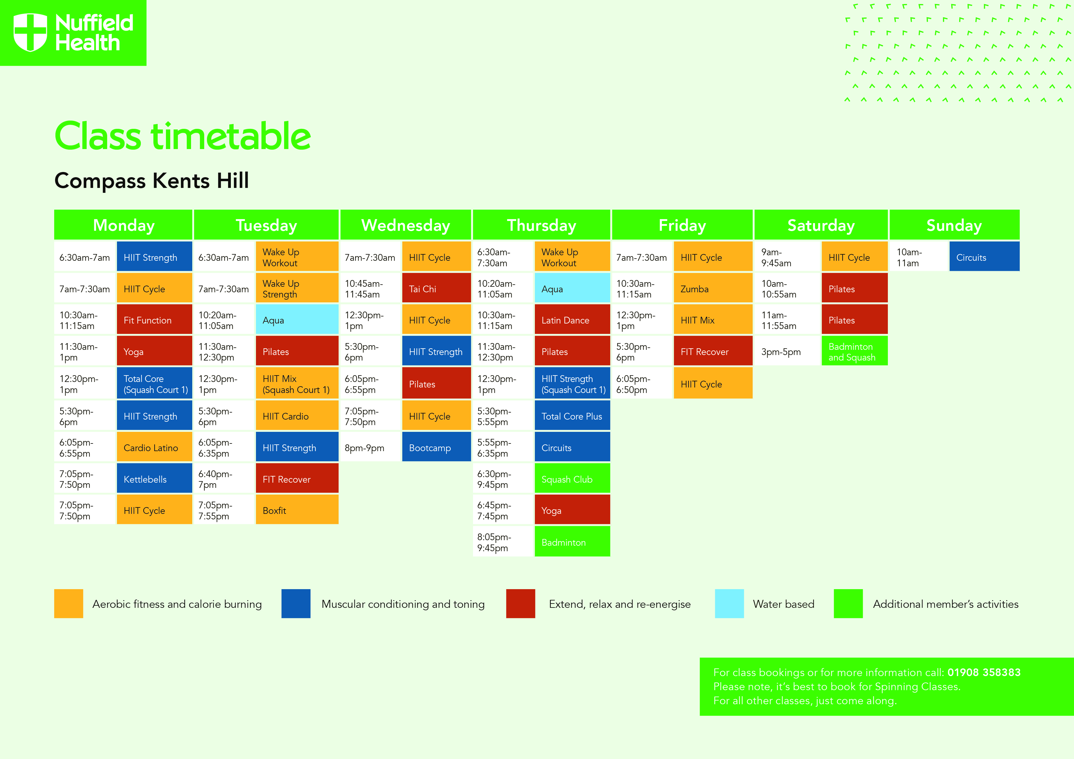 Park Club Milton Timetable